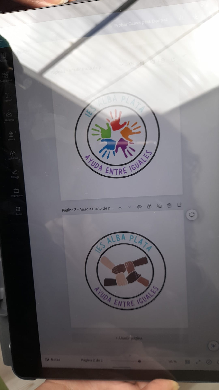 Este curso, hemos decidido renovar el logo del programa de ayuda entre iguales del IES Alba Plata. Hemos estado en el aula del futuro para trabajar por grupos distintas áreas del proyecto: